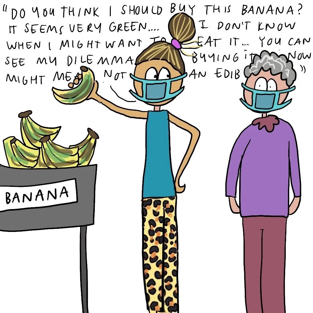 Unsuspecting shoppers in Tescos fall prey to my need to connect. “Do you think I should buy this banana? It seems very green, I don’t know when I might want to eat it, you can see my dilemma, buying it might mean not having an edible banana when needed...”