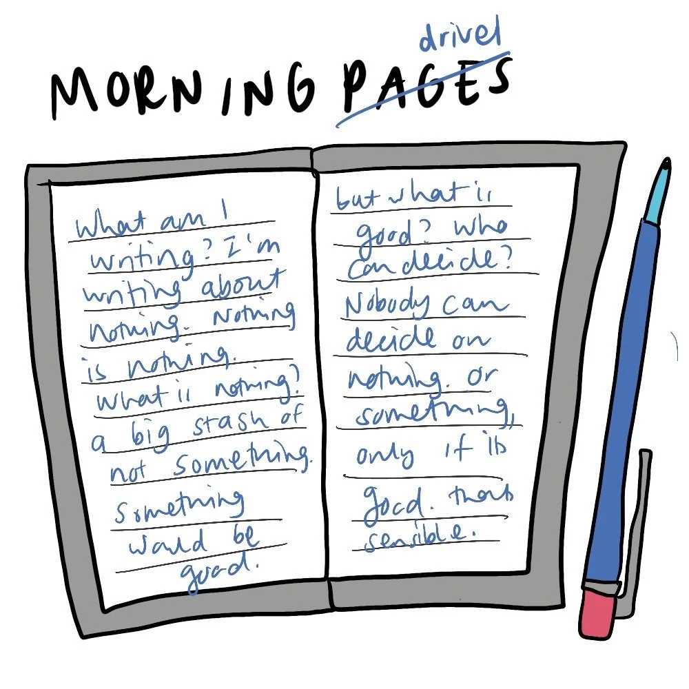 Enter ‘the morning pages’. The idea is as soon as you wake up, before you get out of bed, you write. You are not meant to filter, compose or judge your morning writing, just write whatever comes to mind. You don’t reread them or show them to anyone. Morning pages are a brain dump. I think officially you are meant to write 1 page of A4, but I’ve decided on 3 pages of A4. My hope was to get out all the nonsense from deep within, so that when I do speak to real live humans, it is a coherent and normal conversation of appropriate length and topic.