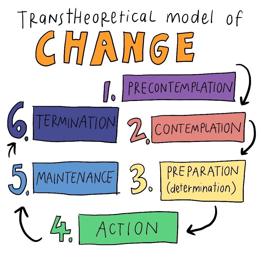 Termination – This is it. This is who I am. I have no desire to return to my previous ways. I will not relapse. (According to the authors, this stage is rarely reached, and people tend to stay in the maintenance stage).