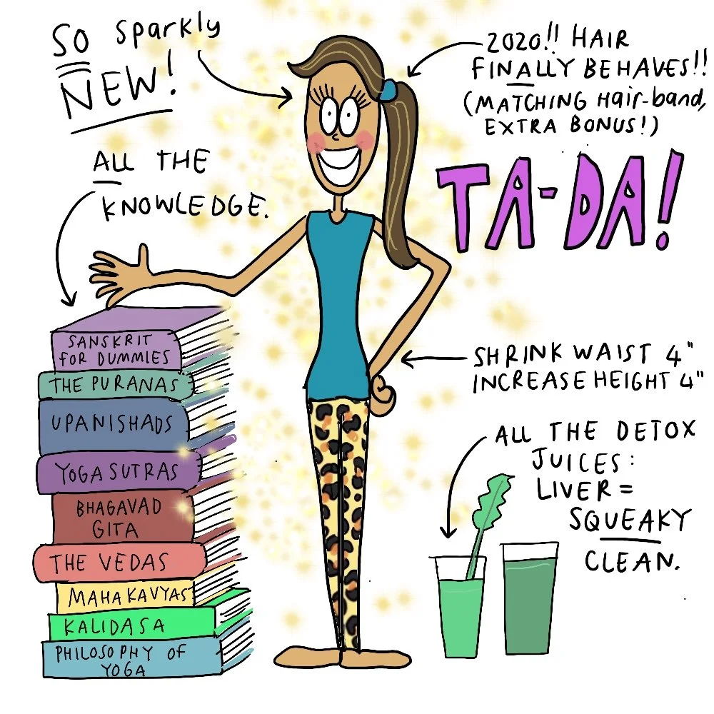 As the guilt of the excesses pull at the seams of my yoga pants, I teach the first few classes of the year exploring the theme ‘you are fine as you are’. I try to do everything to counteract the insinuation that what you did and had last year wasn’t good enough and with tolling of Big Ben, you must improve it all.